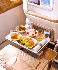 These days, with airline prices soaring, travelers want flexible and economical options from carriers. Enter Emirates, the world’s largest international airline, which has created a new premium economy class, now available in four U.S. markets including New York, San Francisco, Houston and Los Angeles for long-haul flights on its double-decker A380 aircrafts. With this new option, Emirates now offers four distinct classes to choose from on select A380 routes (first, business, premium economy and economy). This new 56-seat cabin offers luxurious seats, more legroom and service to rival many airlines’ business class offerings. Think wood paneling, 19.5 inch-wide, cream-colored leather seats with 6-way adjustable headrests, a pitch of up to 40 inches and an 8-inche recline, a side cocktail table and complimentary amenity kits. Food and beverage offerings include a welcome drink in fine glassware, gourmet meals served on china with stainless steel cutlery and a linen napkin. Each seat has a 13.3” screen, one of the largest in its class, to enjoy 5,000 channels of music, movies, television, news and other content. This is just the start of Emirates’ premium economy ambitions as the carrier has heavily invested in this class, part of a $200 billion refurbishment. The entire refit program is expected to be complete by 2025 with over 4,000 premium economy seats installed across its fleet.